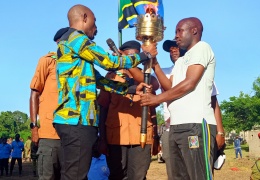 Mkurugenzi Mtendaji wa Halmashauri ya Wilaya ya Mtwara Ndg. Abeid A. Kafunda akikabidhiwa Mwenge wa Uhuru kutoka kwa Mkurugenzi wa Manispaa ya Mtwara-Mikindani Mwl....